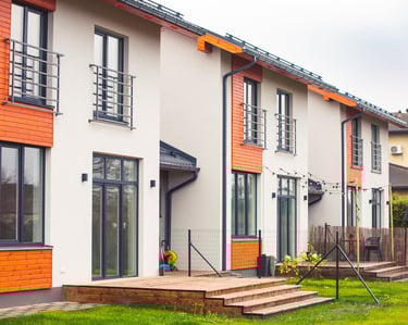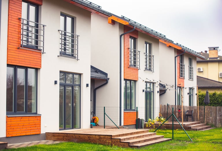 6. Mājas, kas ideāli piemērotas ģimenei, ar nelielu nožogotu zaļā pagalma zonu, kurā varēsiet pavadīt brīvdienas.