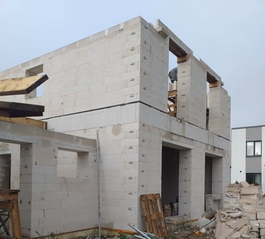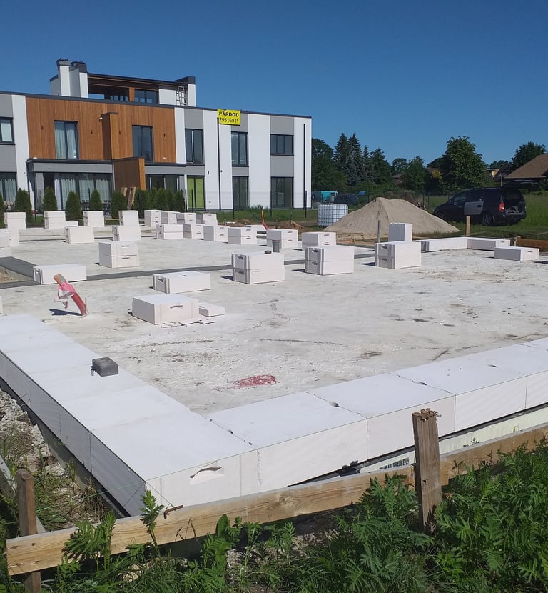 8. Energoefektīva A klases māja ar lentveida pamatiem, mūsdienīgiem sienu blokiem YTONG, kas nav paredzēti papildus siltinājumam. Starpsienām izmantoti YTONG bloki, kas pilda skaņas izolācijas funkciju.
